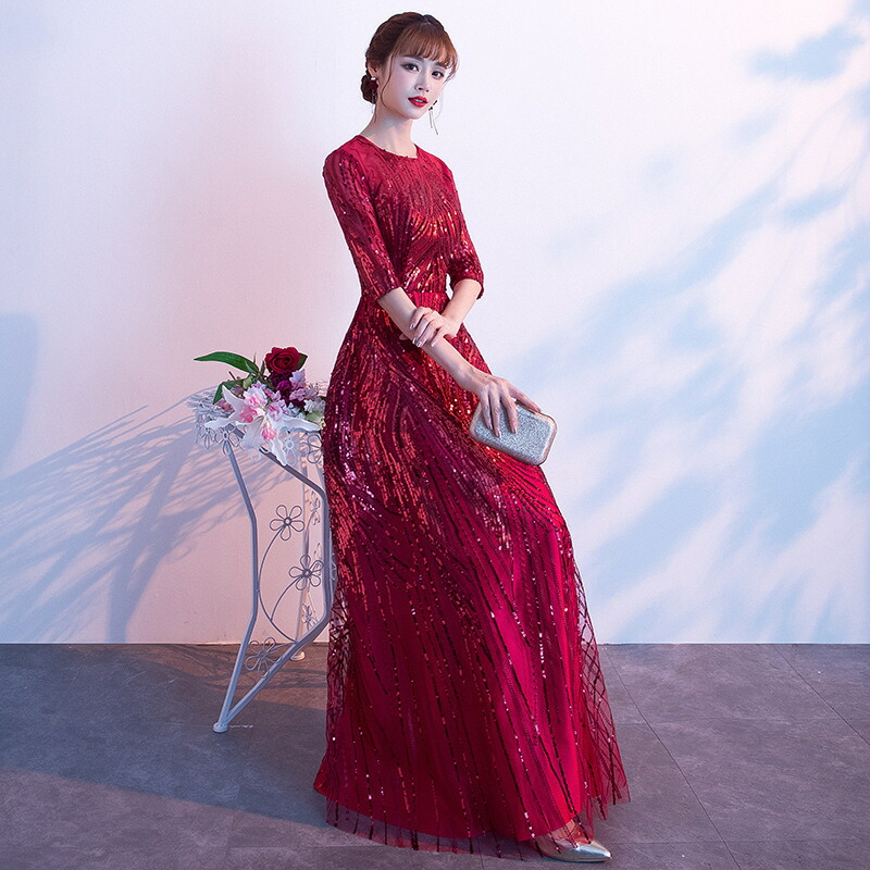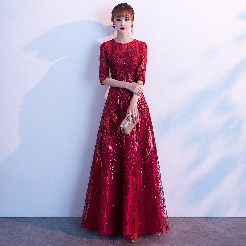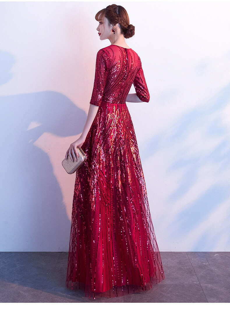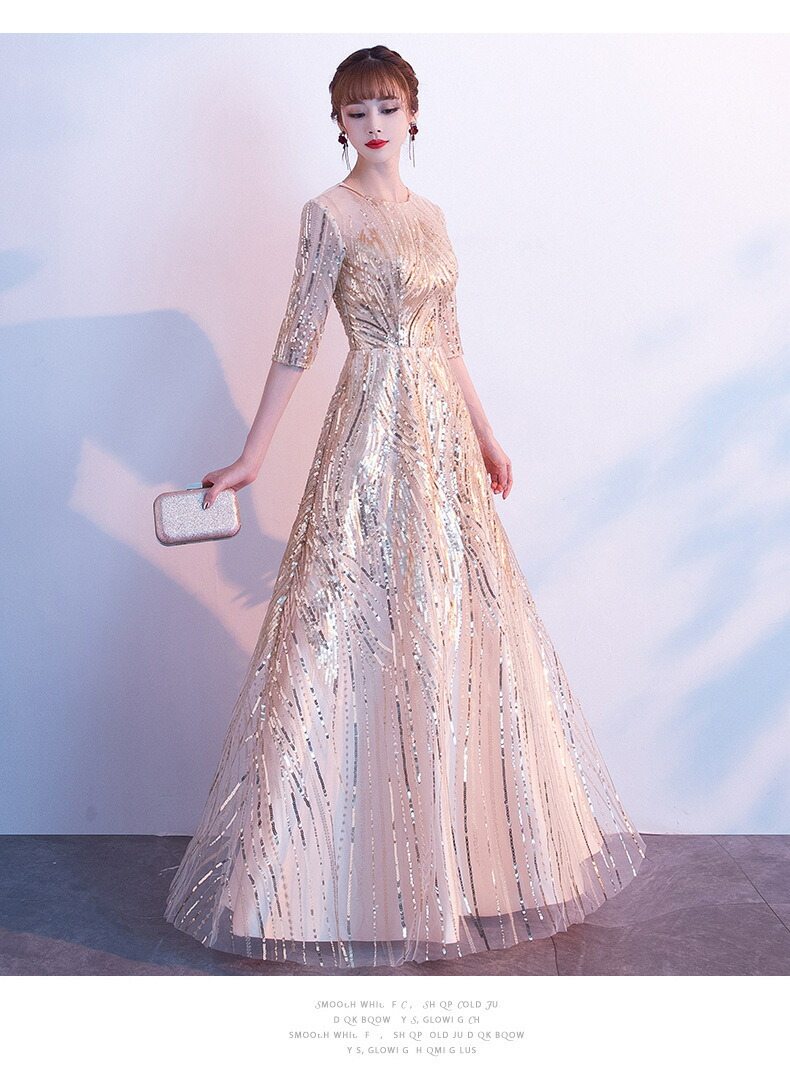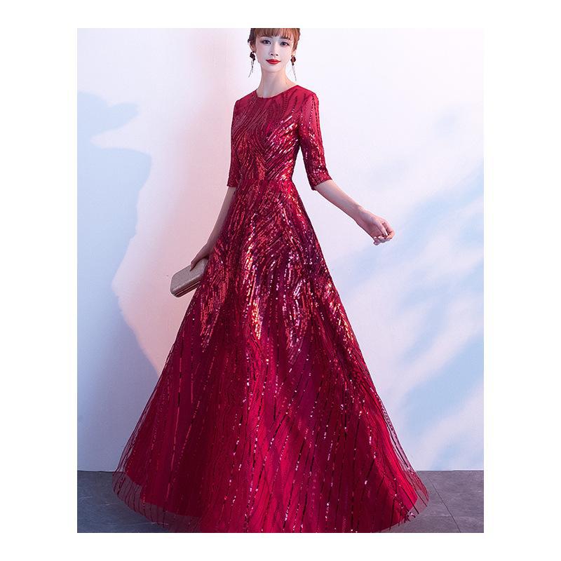 ★上品&豪華に魅せる!キラキラスパンコール刺繍で施された超ゴージャス五分袖ロングドレスです♪