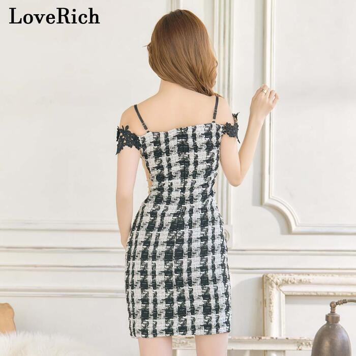 ★大人気!大胆セクシーなツイード素材のワンピース!バストには立体花刺繍&サイドウエストには切り込み&スリットにはレース使いのセクシーミニドレスです♪