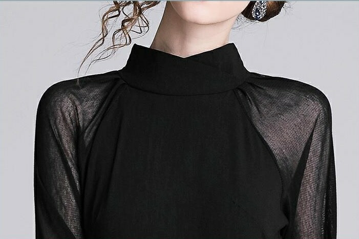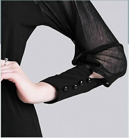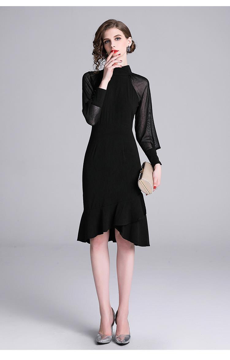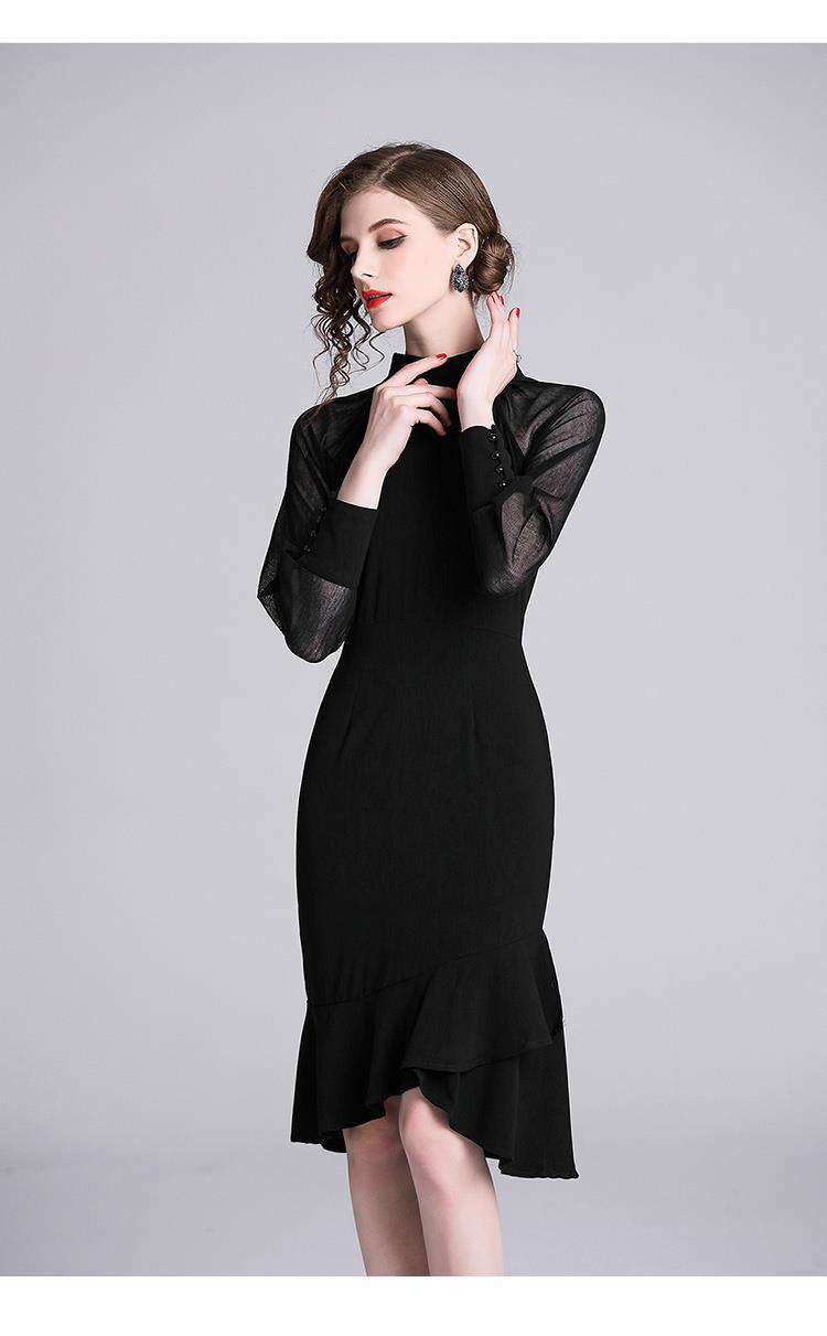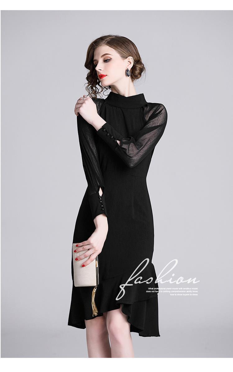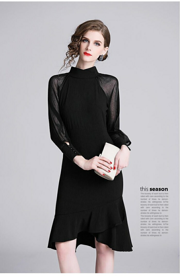 ★当店大人気!クラシカル系上品感漂うオシャレ着 ペプラムマーメイド お袖シフォン 異素材切替 長袖 ドレスワンピースです♪