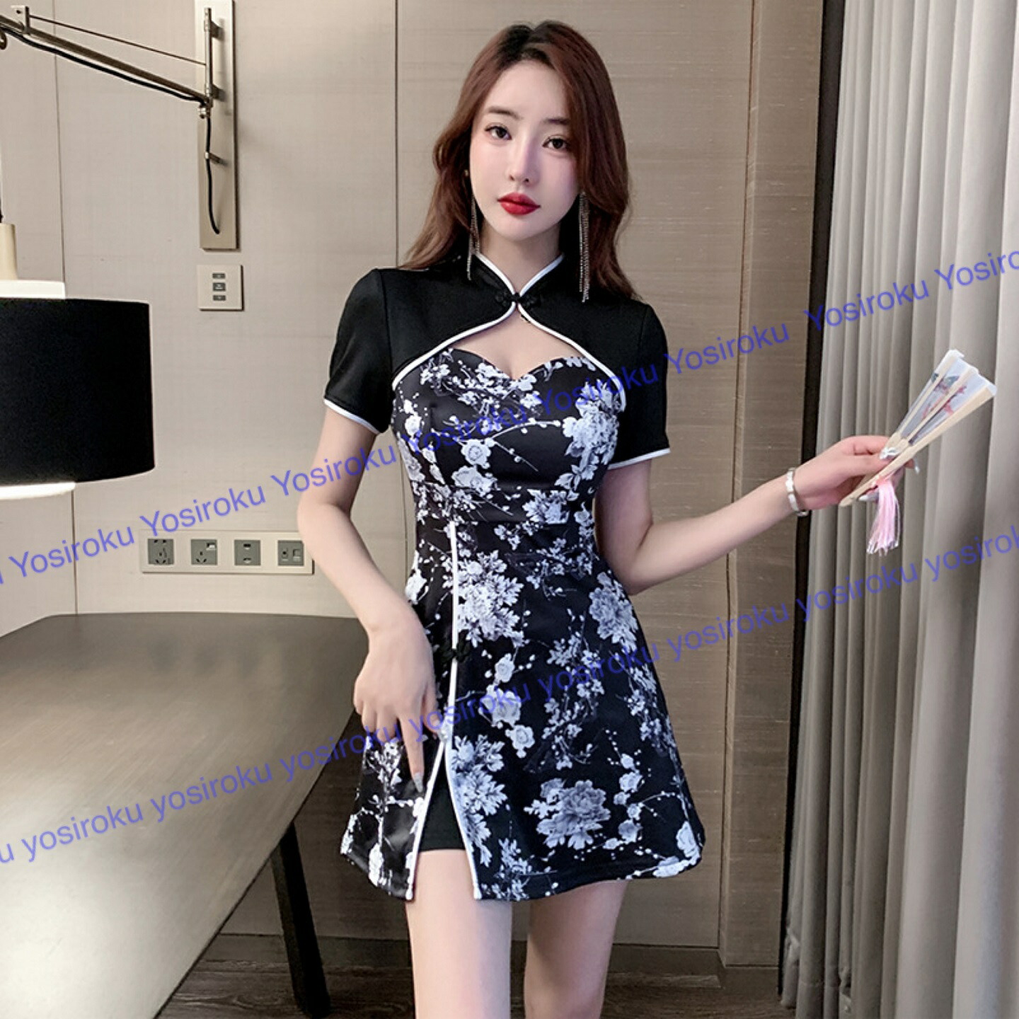キャバドレス セクシー胸元空き チャイ ドレス 続々登場 3L S 4L 2L L M ブラック ホワイト