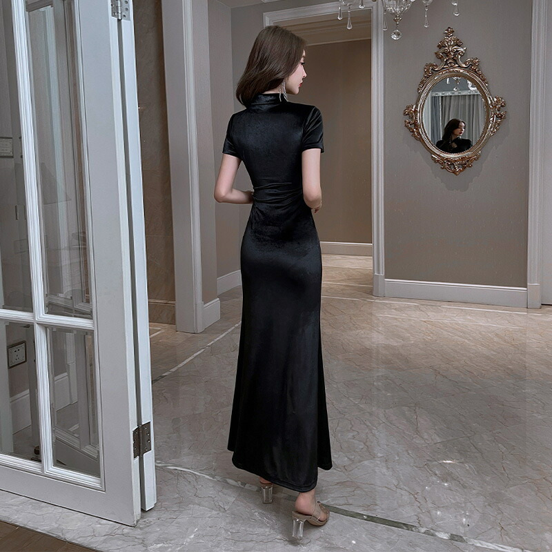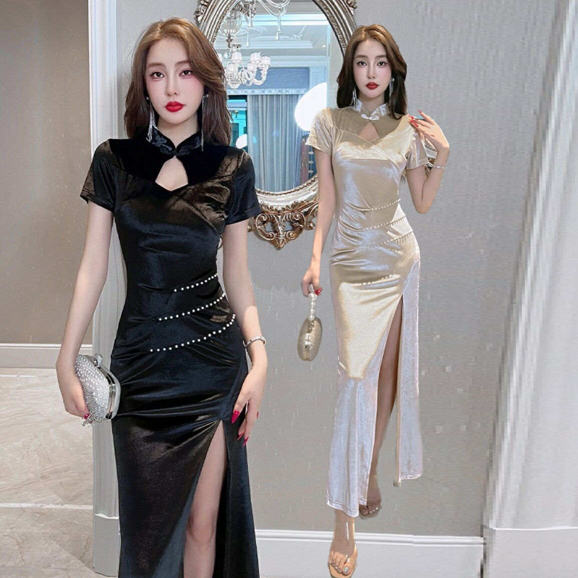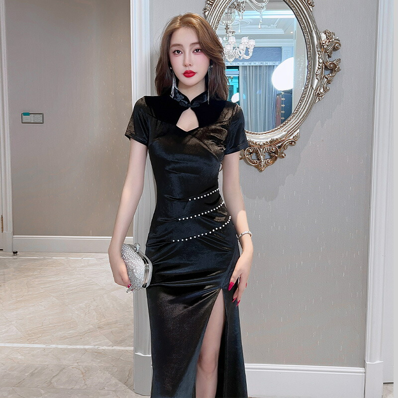 キャバ 魅惑 ドレス レディース 黒 パブ 長袖 レース タイト スカート エレガント プリーツ 韓国 セクシー