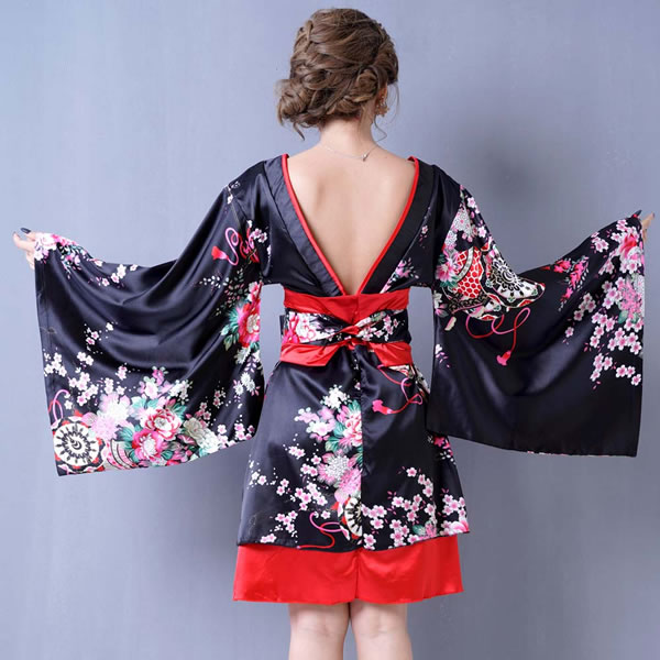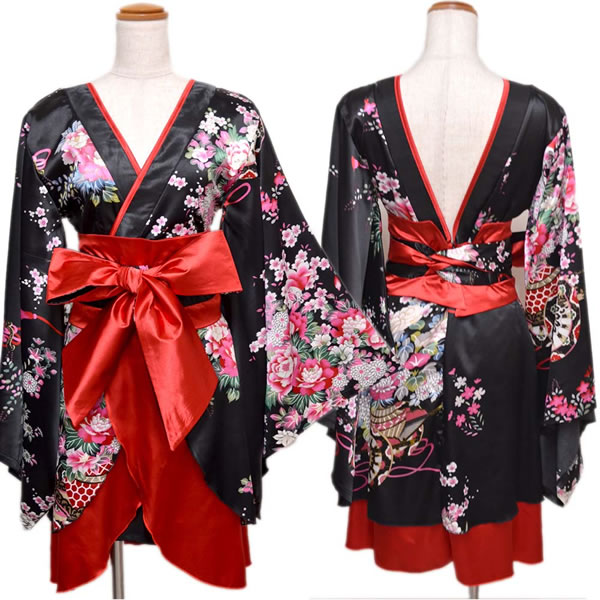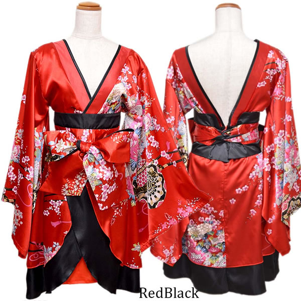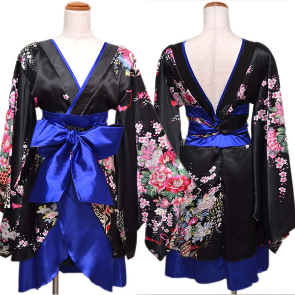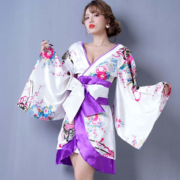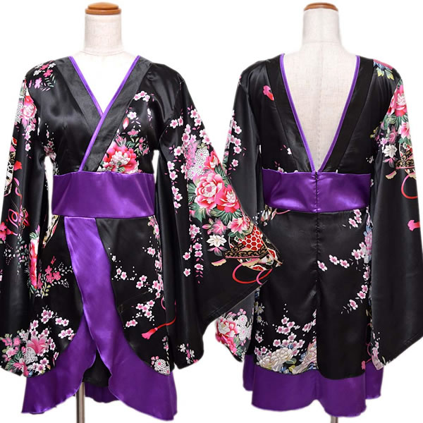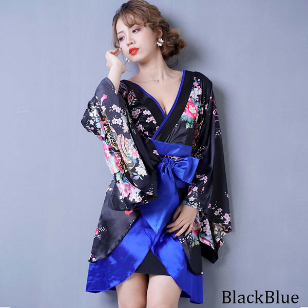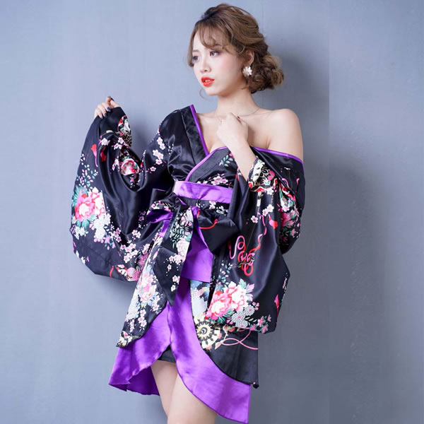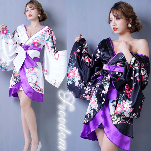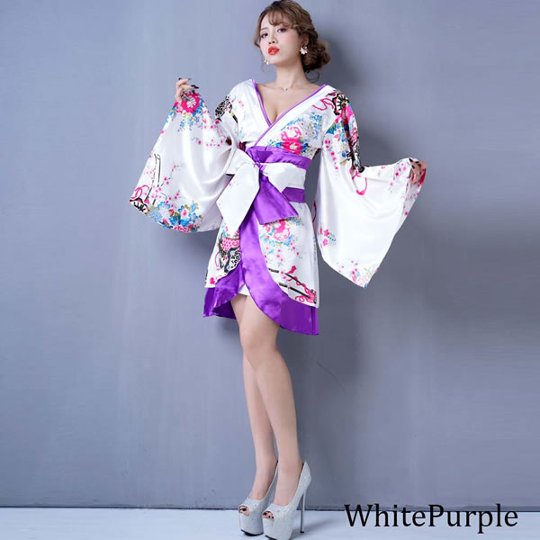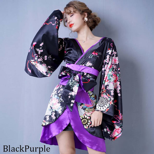花魁 着物ドレス セクシー ミニ 着物 レディースファッション 続々登場 ブラックロイヤルブルー ブラックレッド ブラックパープル ホワイトパープル レッドブラック