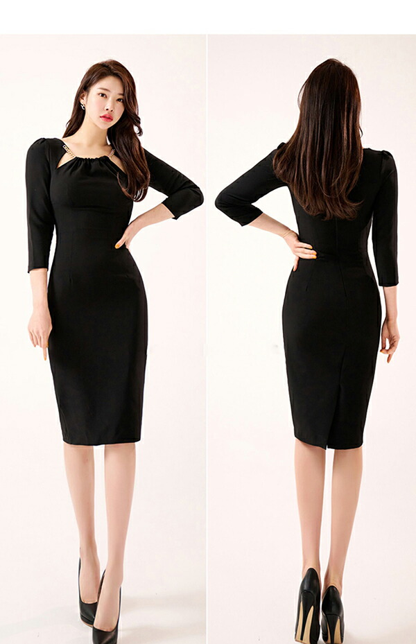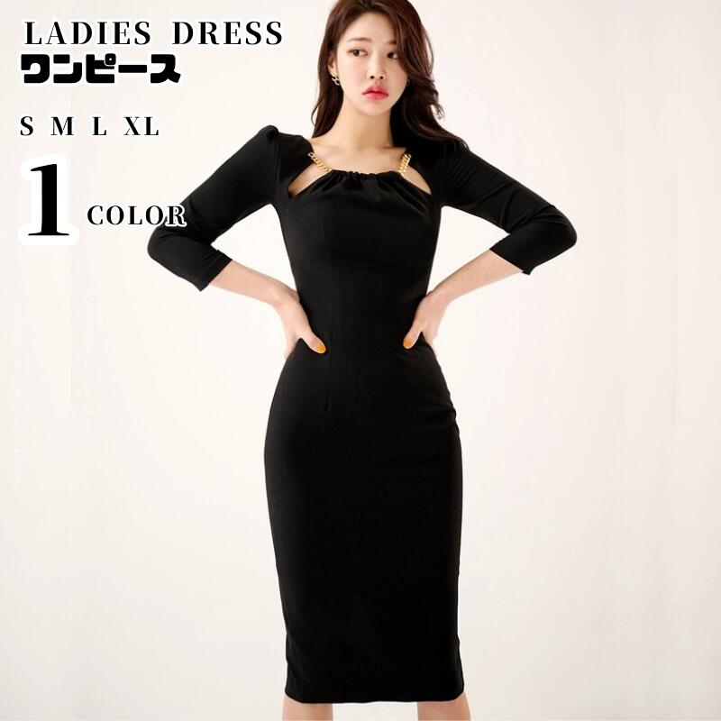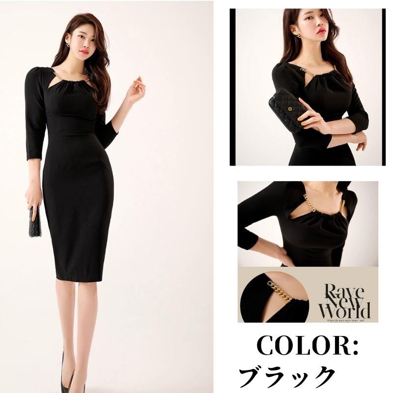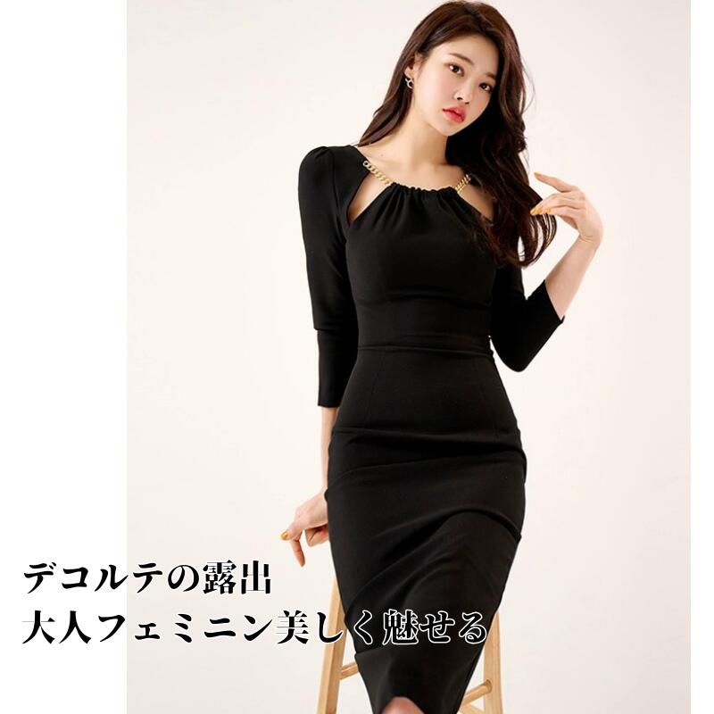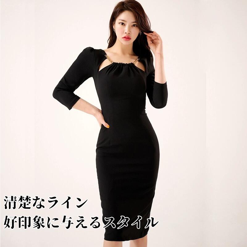 キャバ 魅惑 ドレス レディース 黒 パブ 長袖 レース タイト スカート エレガント プリーツ 韓国 セクシー