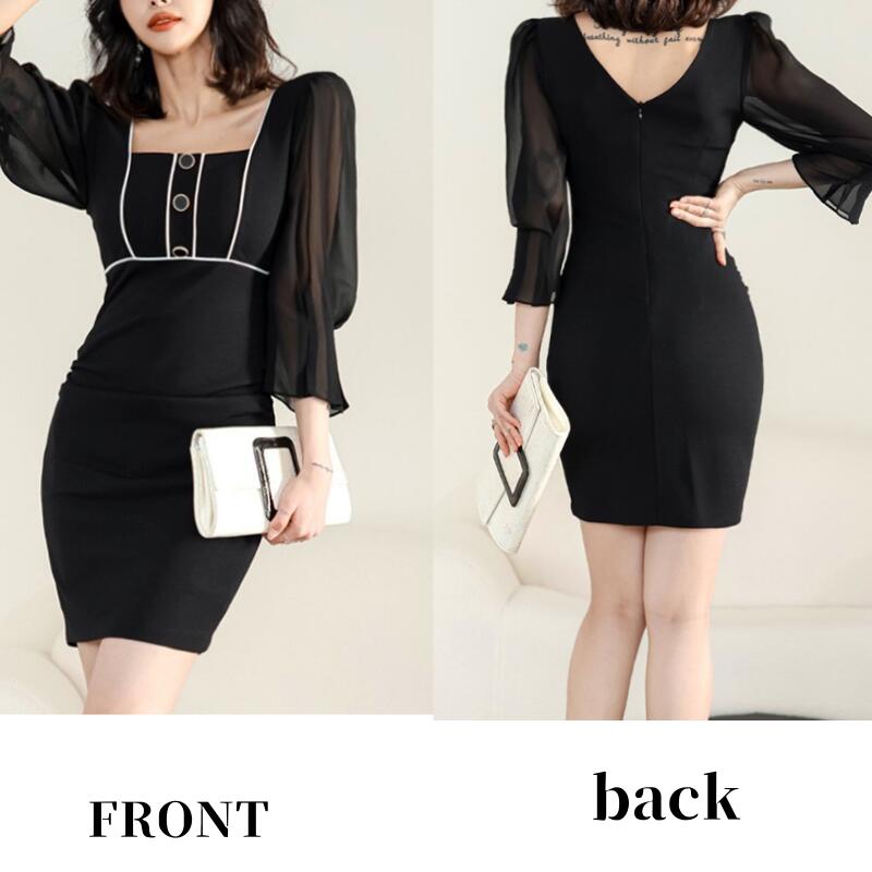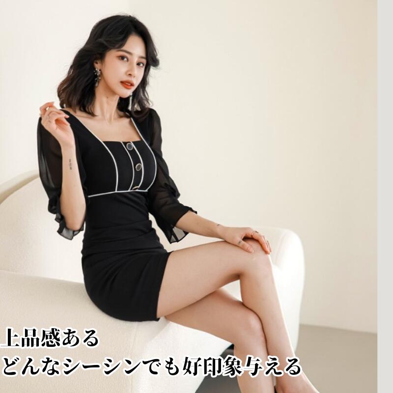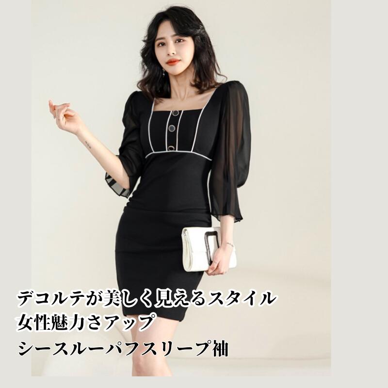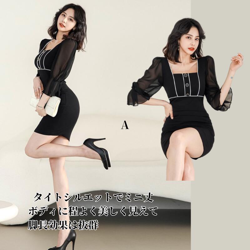 キャバ 魅惑 ドレス レディース 黒 パブ 長袖 レース タイト スカート エレガント プリーツ 韓国 セクシー
