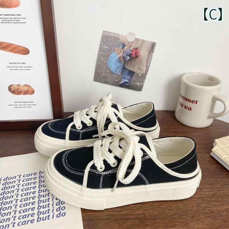 キャンバス 帆布 スニーカー 白 黒 靴 特集 A:カーキ B:オフホワイト C:ブラック 22.5 23 23.5 24 24.5 25
