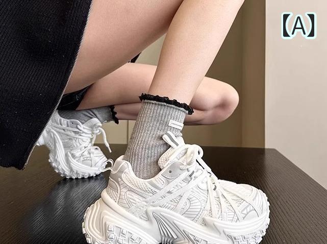 ダッドスニーカー 個性的 白 厚底 ス 靴 通販 A:ホワイト B:シルバー 22.5 23 23.5 24 24.5 25