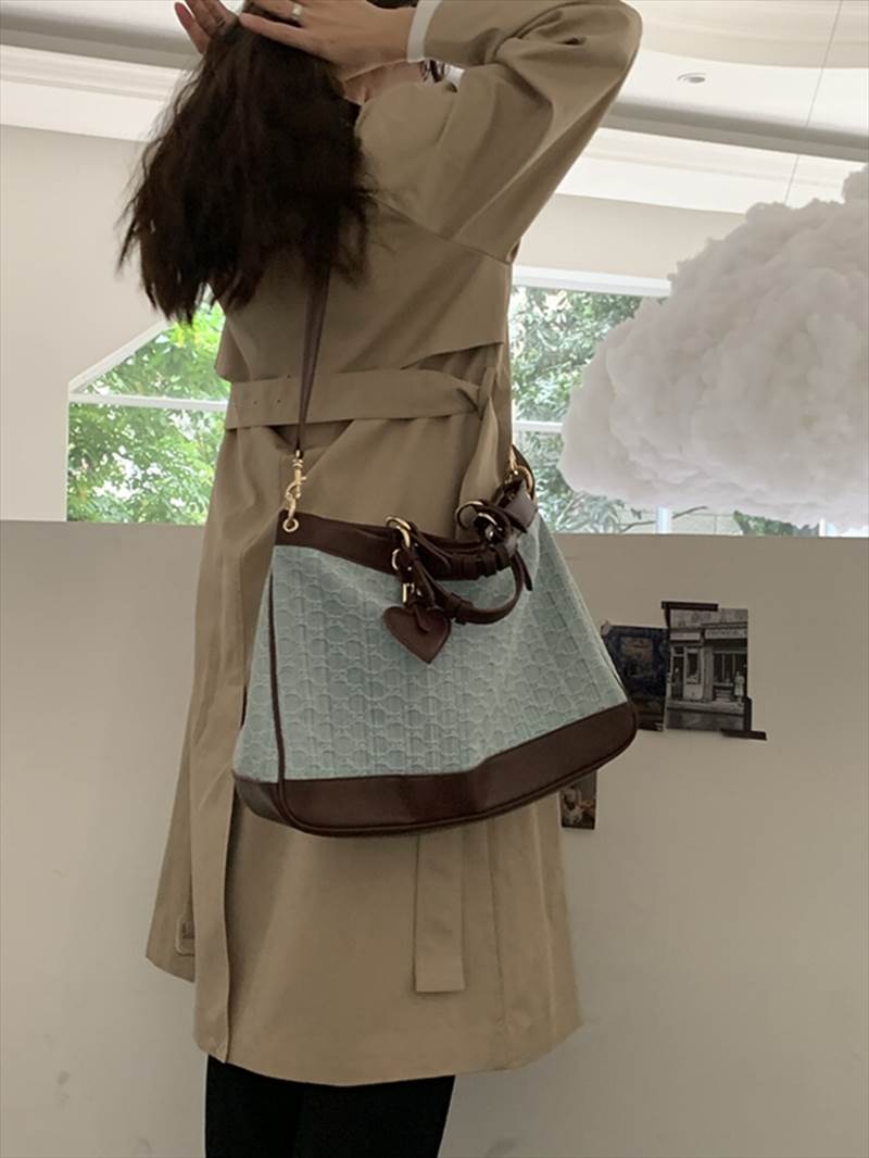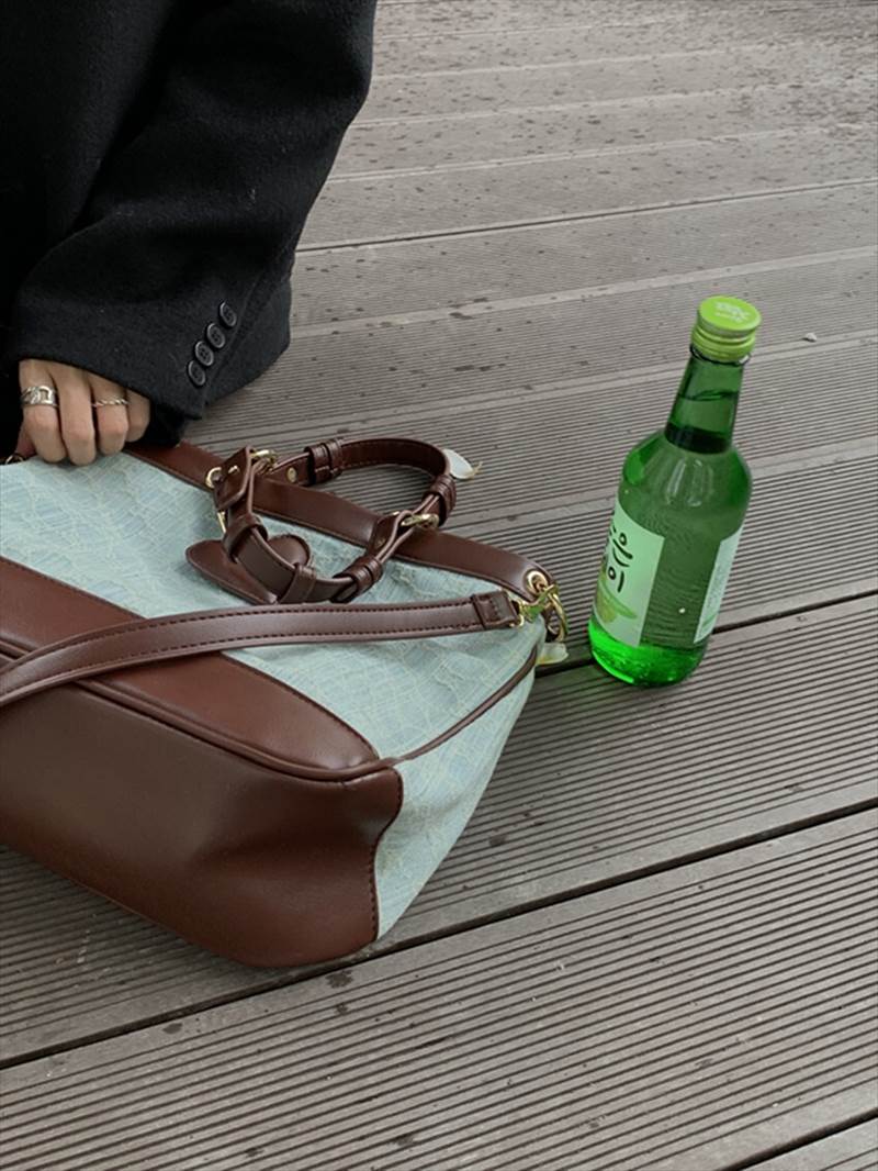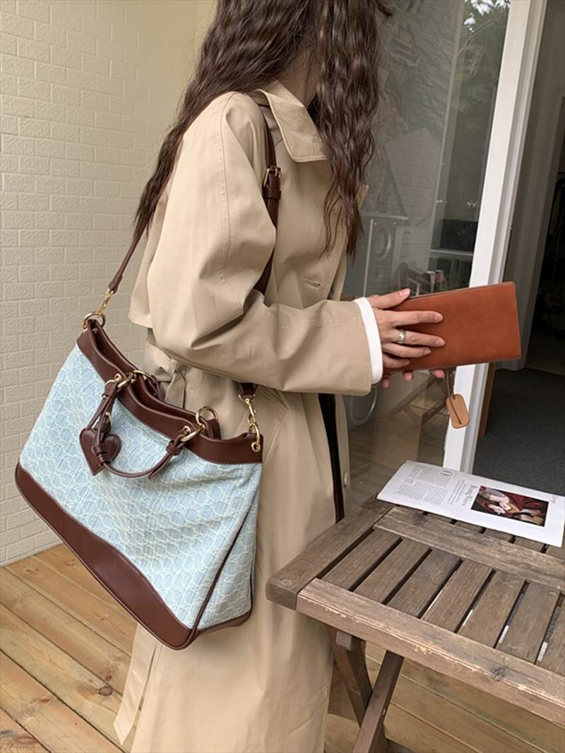 2色 ショルダーバッグ レトロ 大容量 キルテ