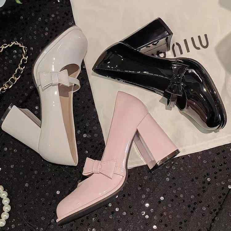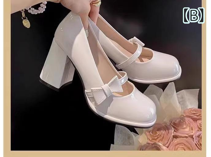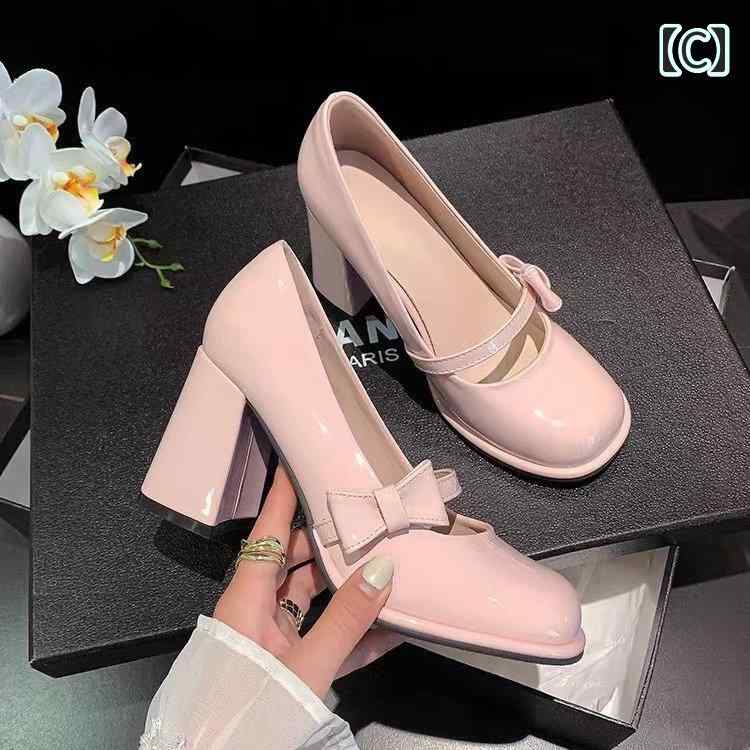 パンプス フレンチレトロ チャンキーヒ 靴 早い者勝ち A:ブラック B:オフホワイト C:ピンク 22 22.5 23 23.5 24 24.5