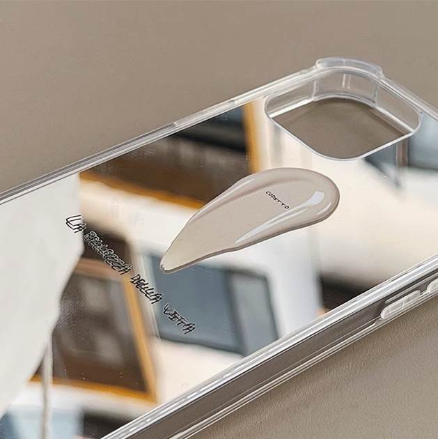 鏡面ベースに絵の具が一筆デザインされた大人可愛いiPhoneケース♪