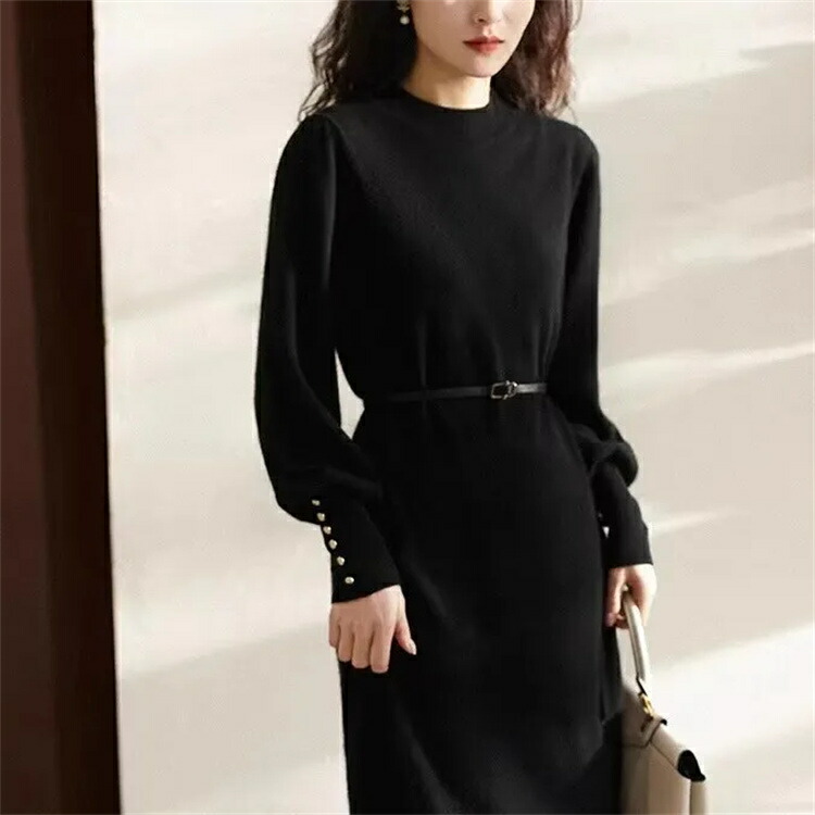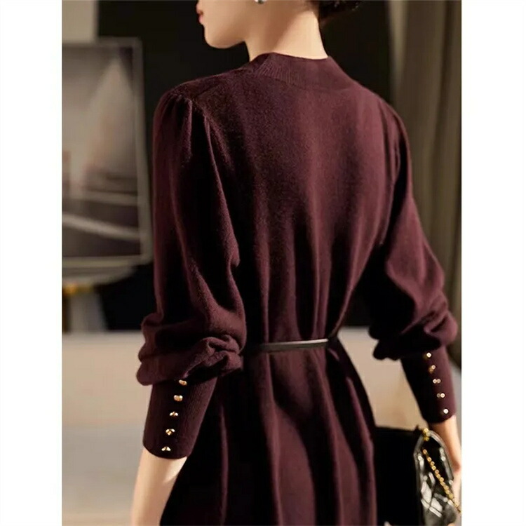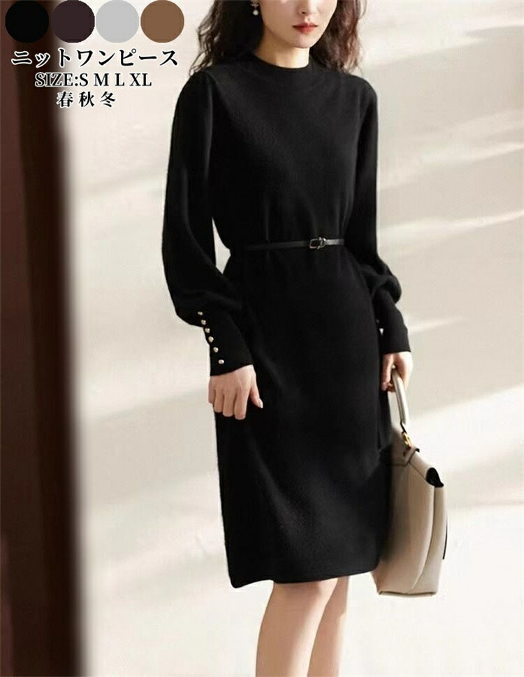 ワンピース フェミニン ニットワンピー ワンピース 新登場! ワインレッド ブラック グレー ブラウン S M L XL