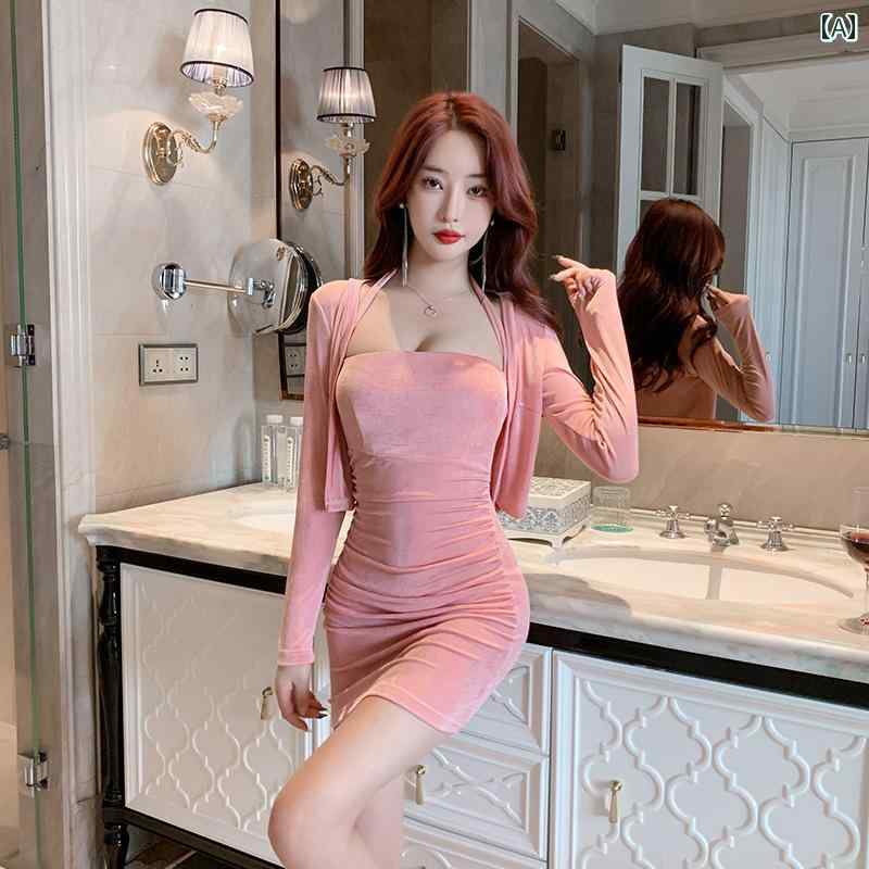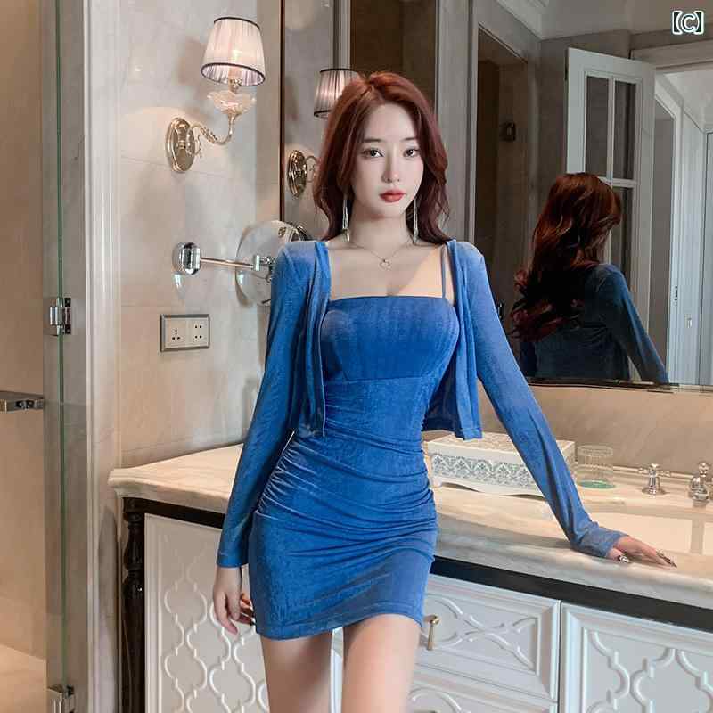 レディース ワンピース 長袖 ボレロセ ドレス 新登場! A:ピンク B:ブラック C:ブルー D:ピンク キャミソール E:ブラック キャミソール S M L XL 2XL 3XL
