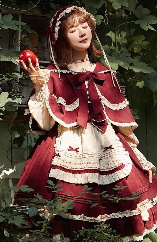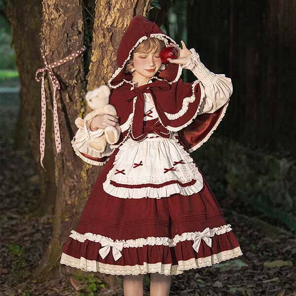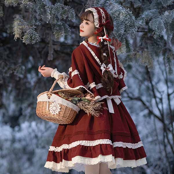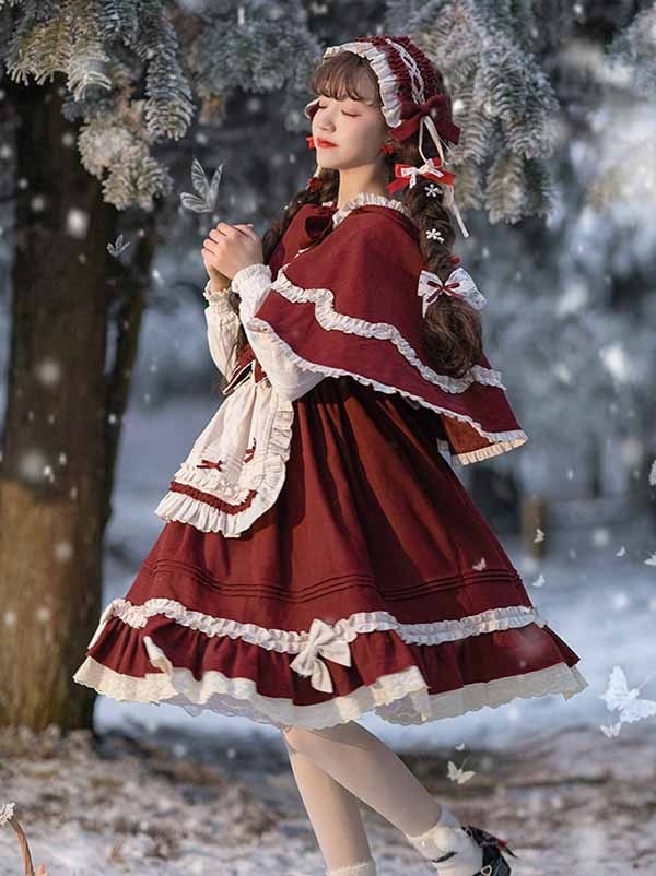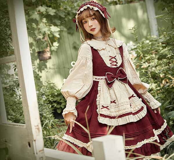 ロリータ ワンピース 花柄 レディース ゴスロリ ミモレ丈 クラロリ リボン 冬服 Aライン ハイウエスト ロリィタファッション レトロ風 クラシカル 上品 かわいい 日常着 通勤 お出かけ 仮 通学