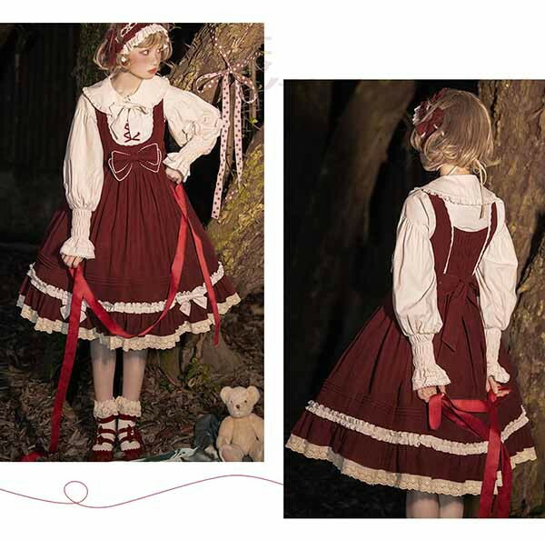ジャンパースカート シャツストライプ レディース ロング ジャンスカ ロリータ lolita クラロリ 日常 フレアスカート レトロロングスカート Aライト 可愛い 春秋 エレガント クラシック 大人