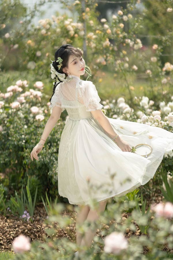 ロリータ ワンピース 花柄 レディース ゴスロリ ミモレ丈 クラロリ リボン 冬服 Aライン ハイウエスト ロリィタファッション レトロ風 クラシカル 上品 かわいい 日常着 通勤 お出かけ 仮 通学