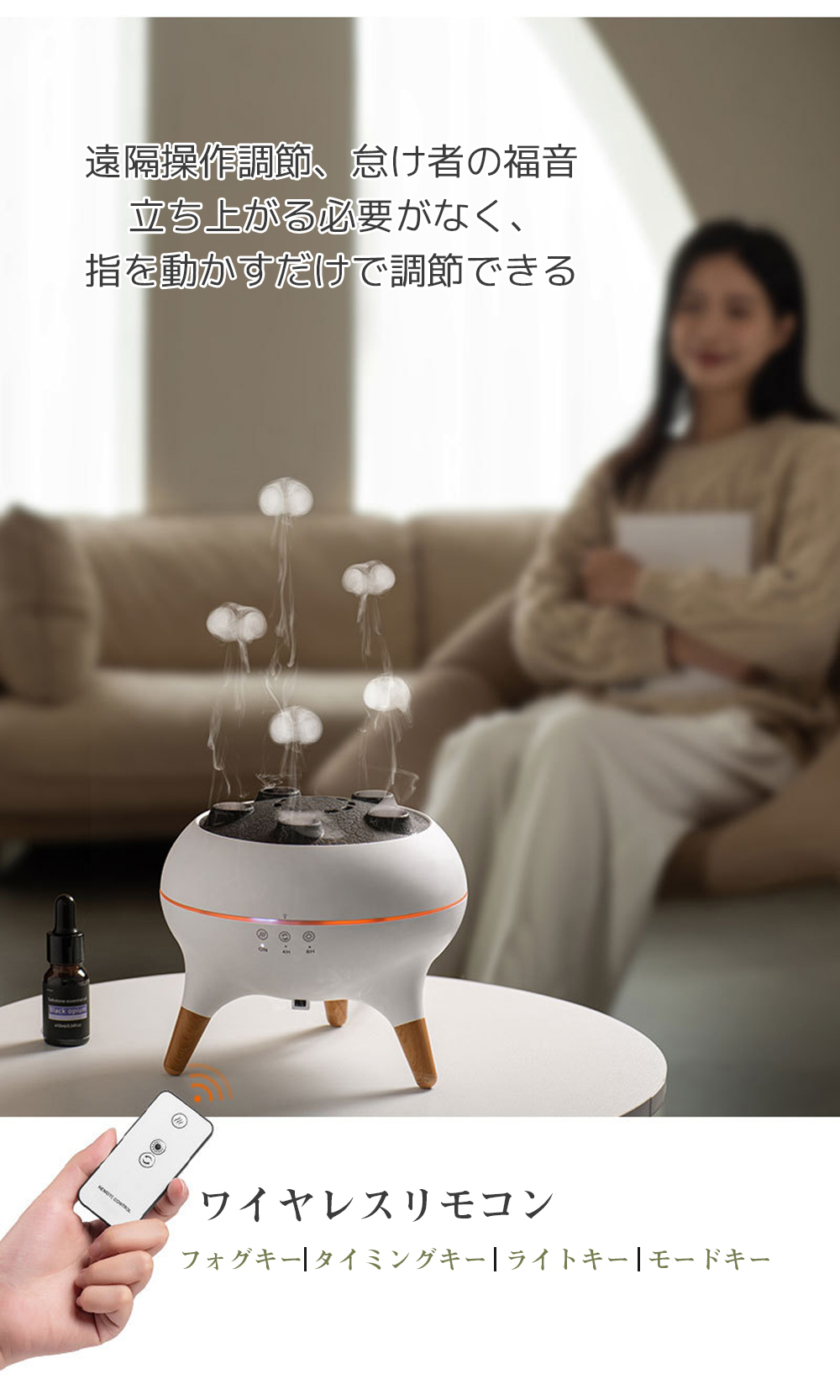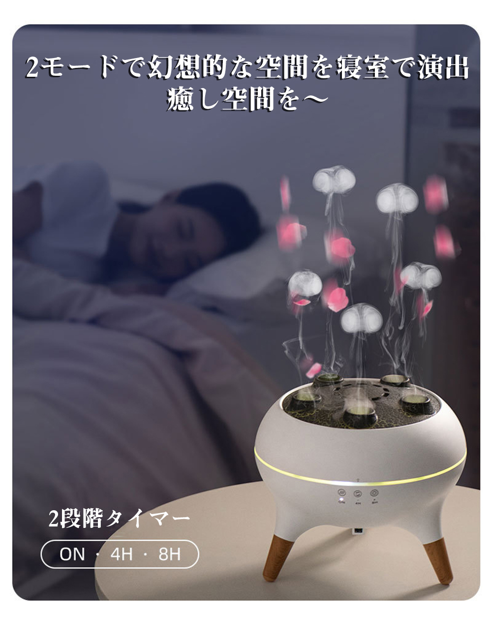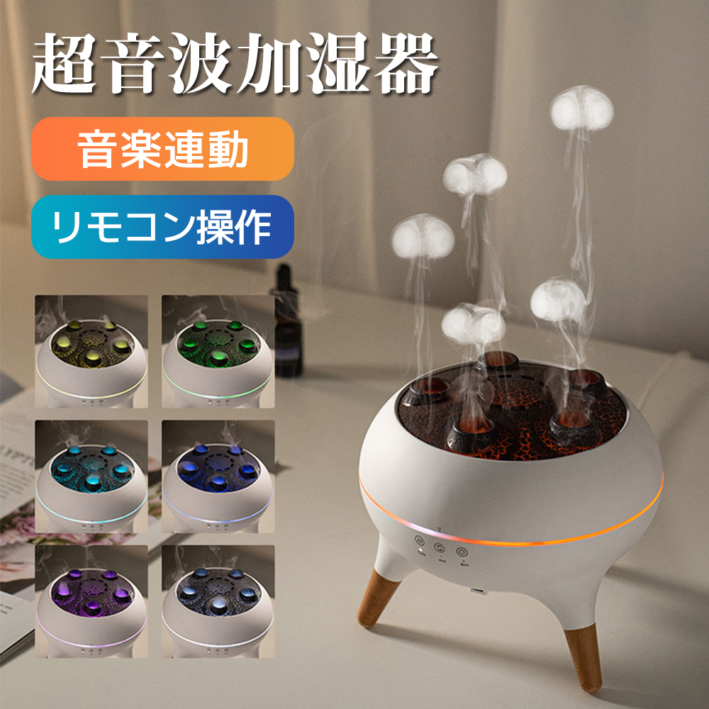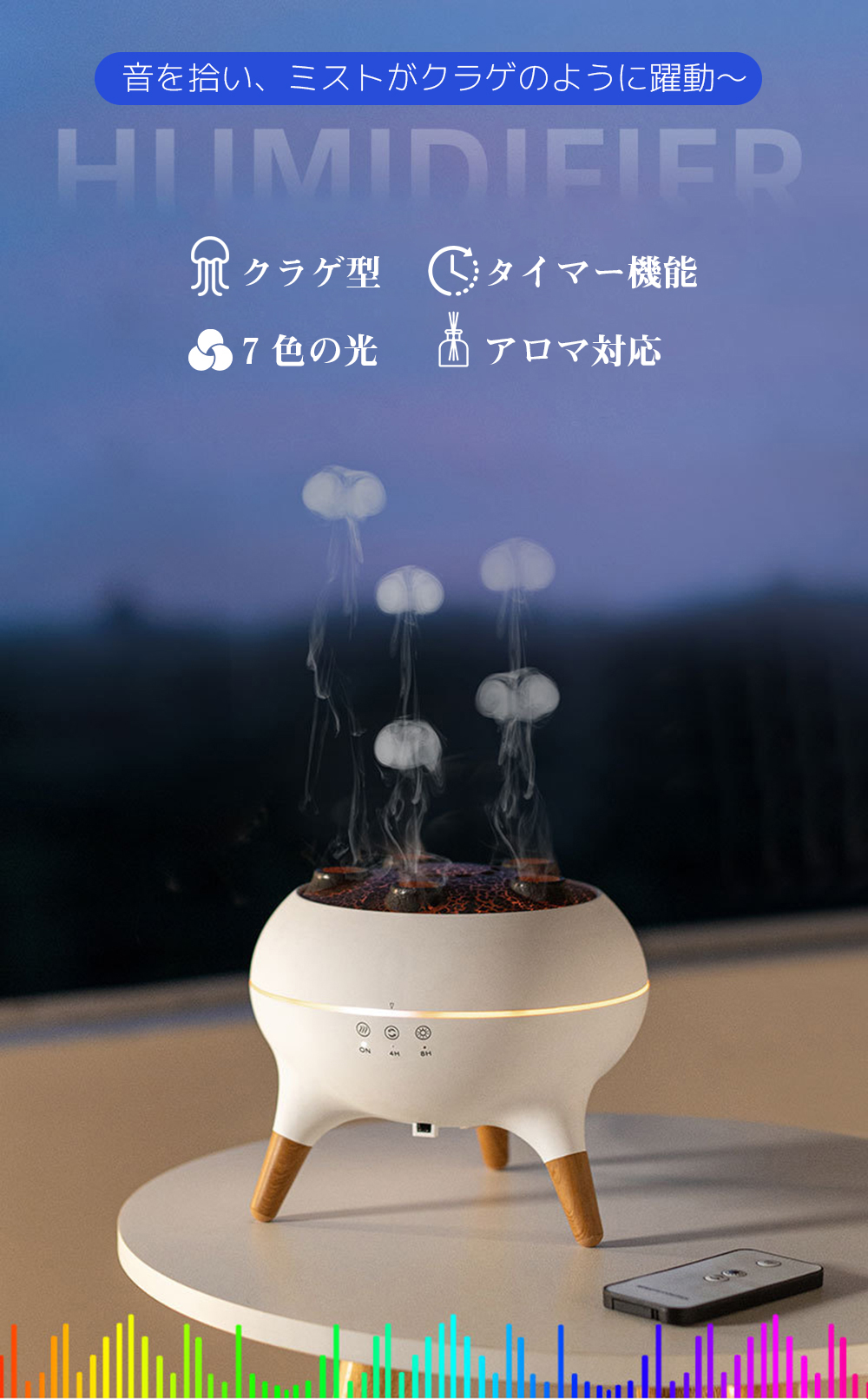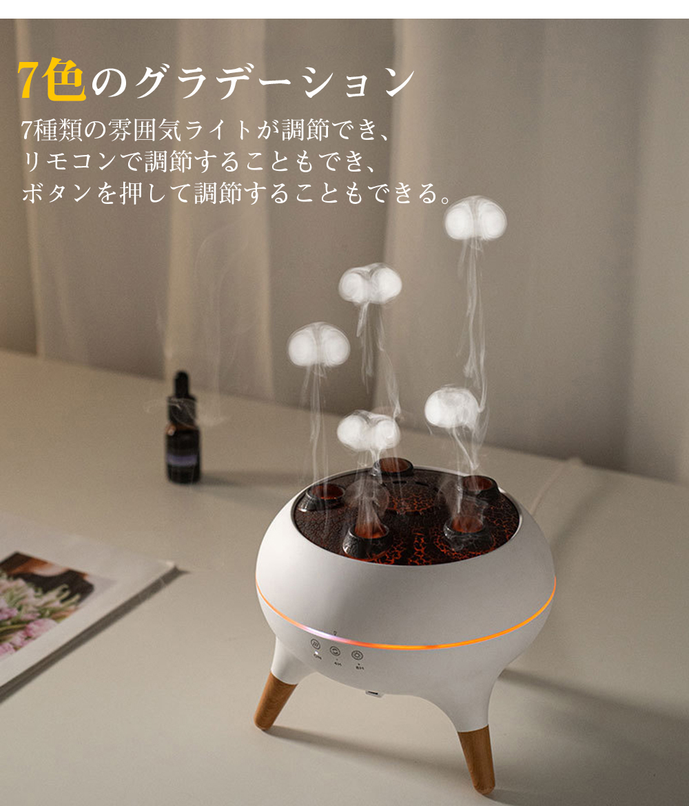 卓上加湿器 加湿器 くらげ アロマディフューザー クラゲ噴霧 空焚き防止 自動オフ 小型 スチーム式 超音波式 uv除菌 7色の光 アロマ対応 2段階タイマー機能 大容量250ml リモコン付き おしゃれ 省エネ 乾燥対策 寝室 リビング 床置き 事務所 オフィス アロマ機能