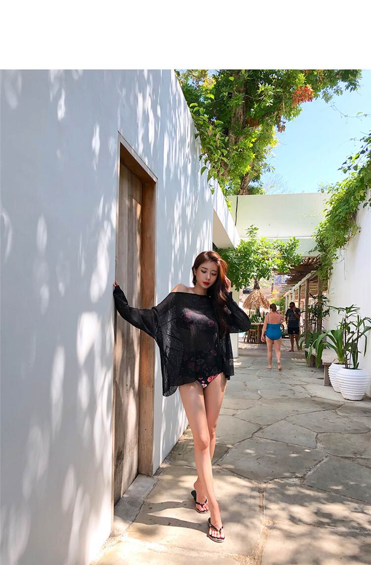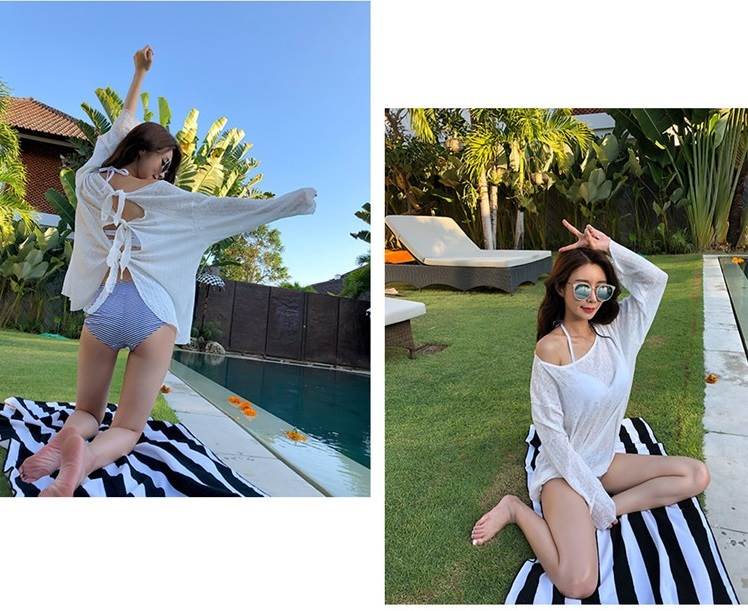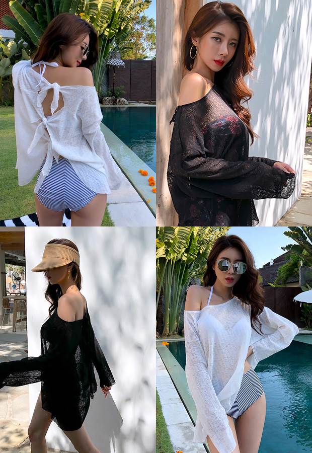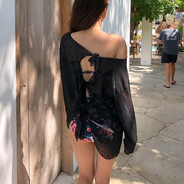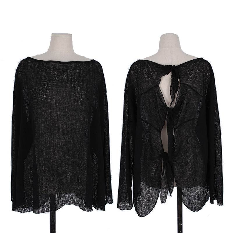 2色 バックリボン トップス 羽織 プルオーバー 海 リゾート コーデ リボン ブラウス セクシー ゆったり 透け感 黒 白 無地 日焼け防止 水着 上着 バックシャン かっこいい 長袖 ビ 背中開き