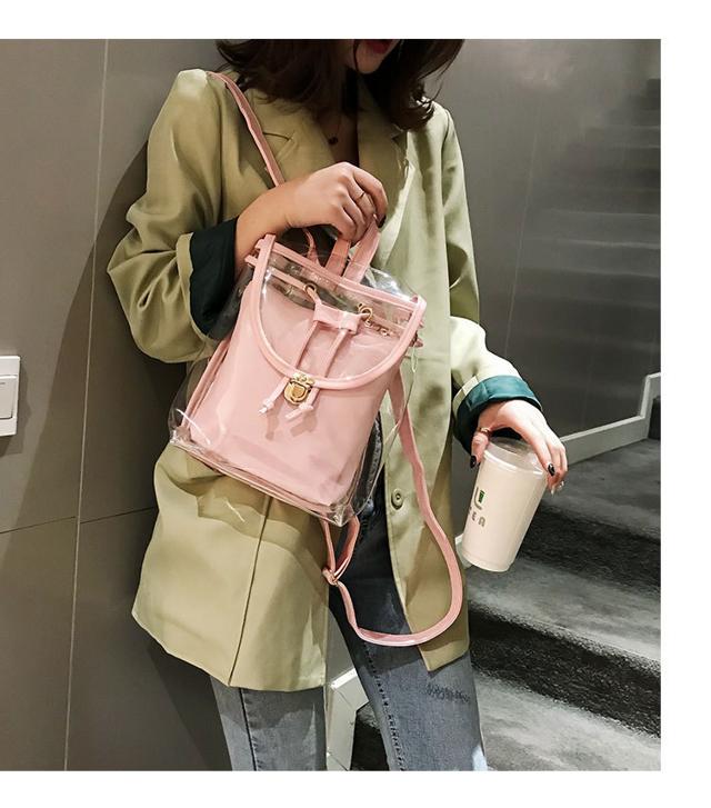 透明感が可愛いミニリュック!小ぶりで可愛らしく、春夏のお出かけにぴったりです。クリア素材が涼しげで、中身のポーチも使いやすいです。