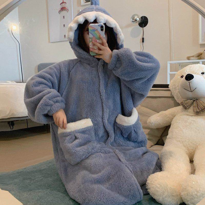 着る毛布 もこもこ ルームウェア ガウン 長袖 パジャマ 着ぐるみ風 フード付き オールインワン アニマル 動物 無地 面白い 個性的 かわいい ふわふわ インスタ映え キャラクター 部屋着 やわらか
