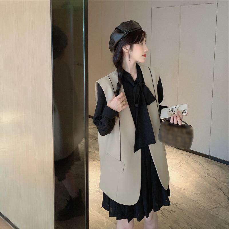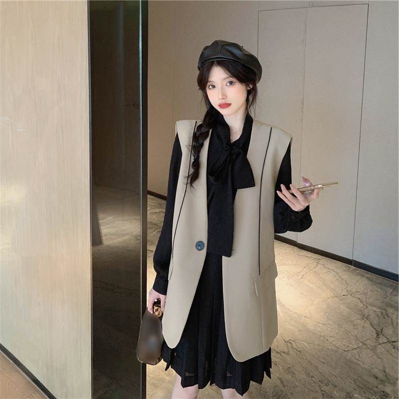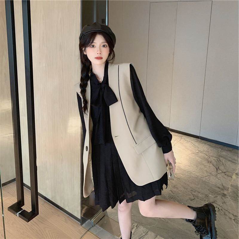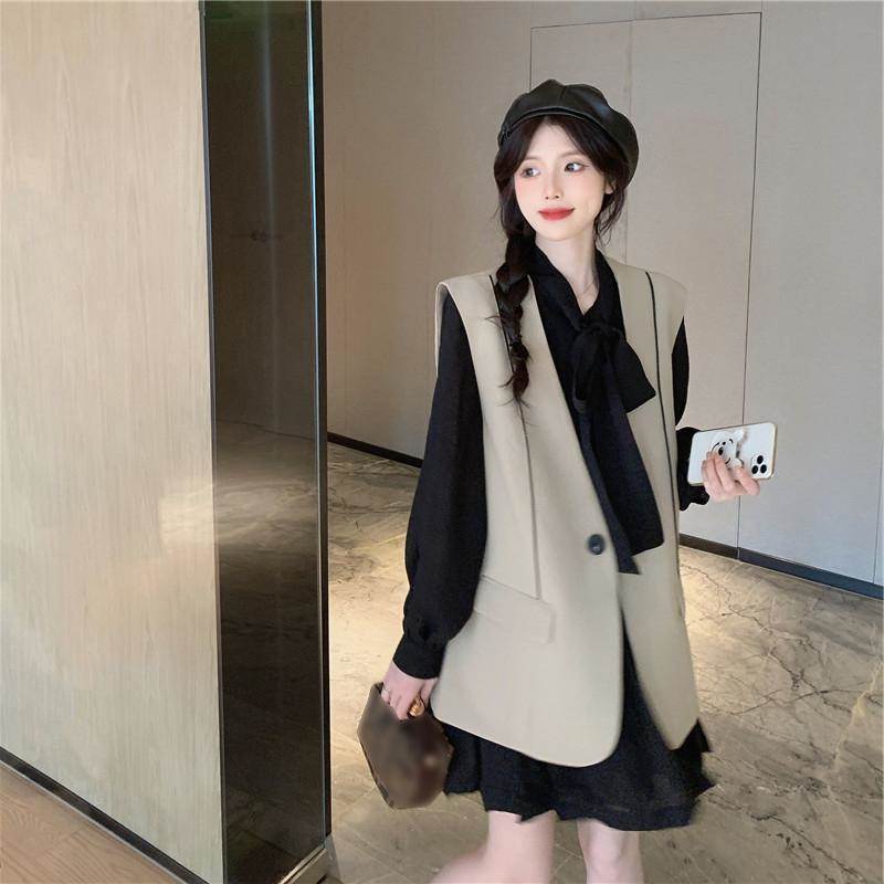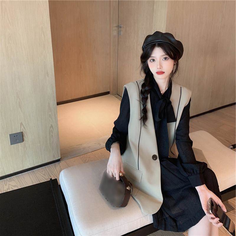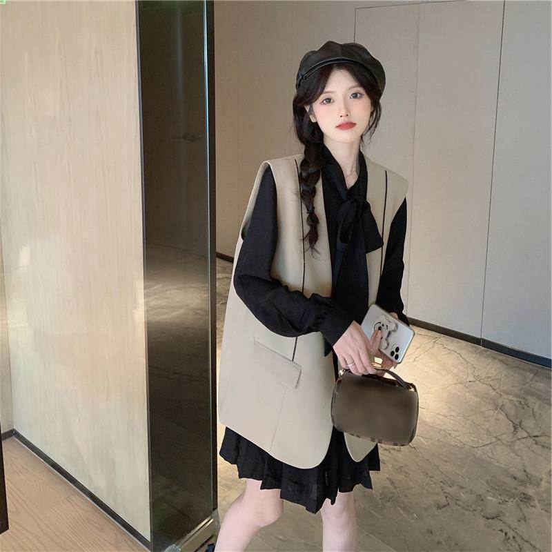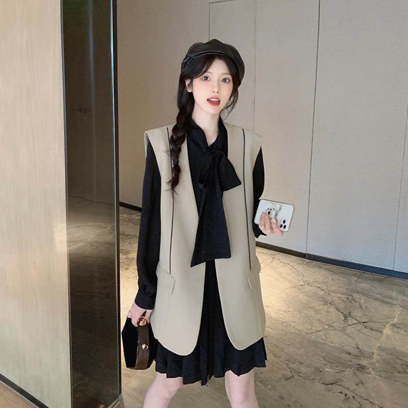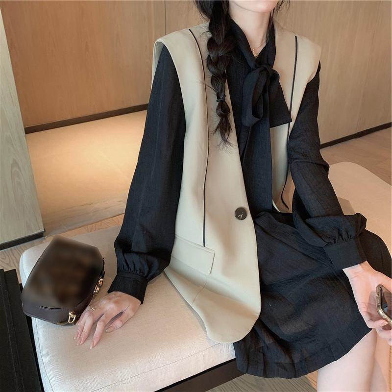 セットアップ ワンピース ベスト レディース 2点セット ミニワンピース ボウタイ 黒 大人可愛い きれいめ カジュアル ツーピース 春 秋 ブラック ホワイト 襟付き ボタン シングルブレス 白