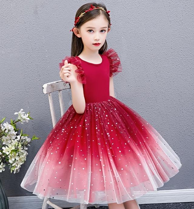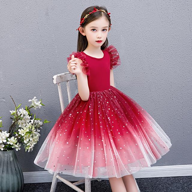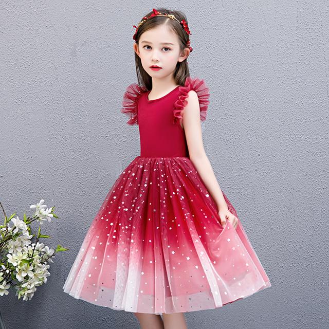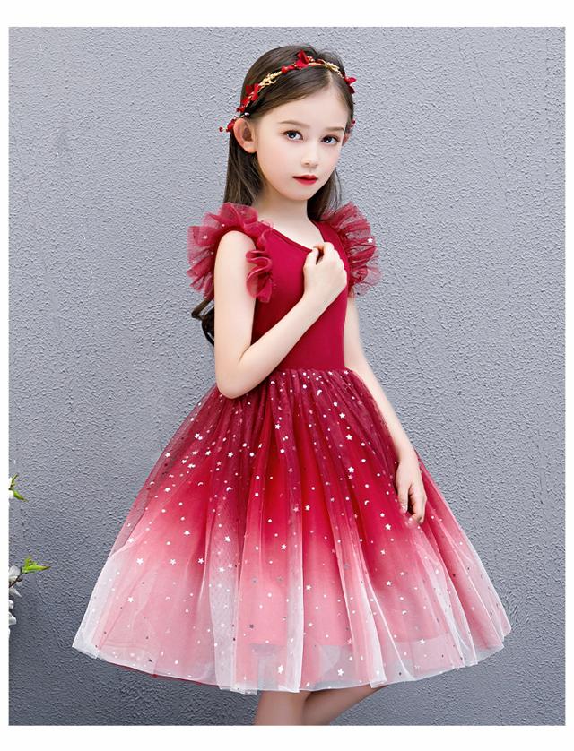 子供 ドレス 膝丈 ミニ おしゃれ 可愛い グラデーション キッズドレス ピアノ 発表会 女の子 子ども 結婚式 フォーマル 子供服 ワンピース ノースリーブ フリル 青 赤 100 ビジュー