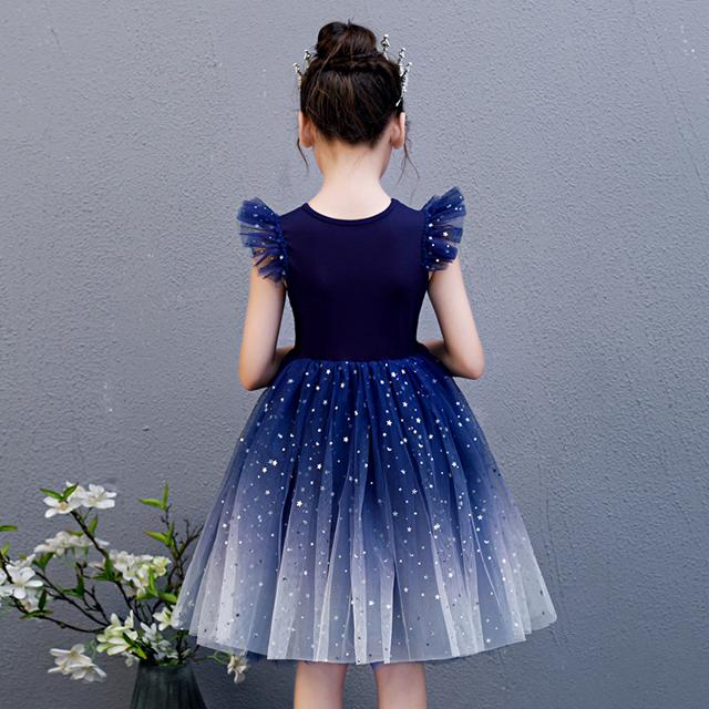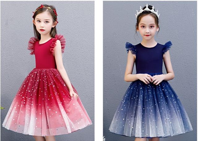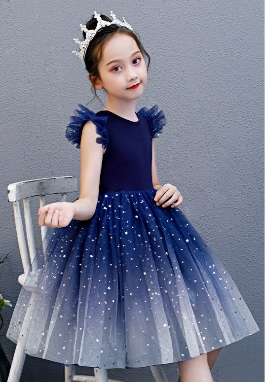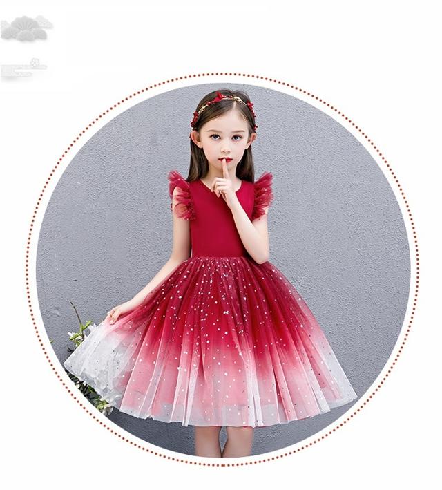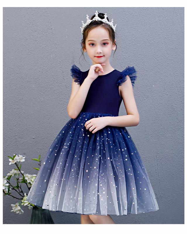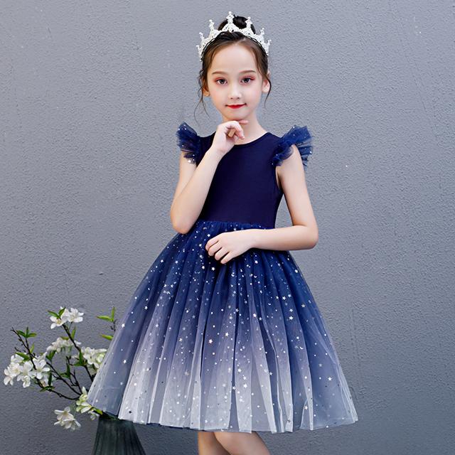 子供 ドレス 膝丈 ミニ おしゃれ 可 キッズ ドレス 新作 ブルー レッド 110 120 130 140 150 160