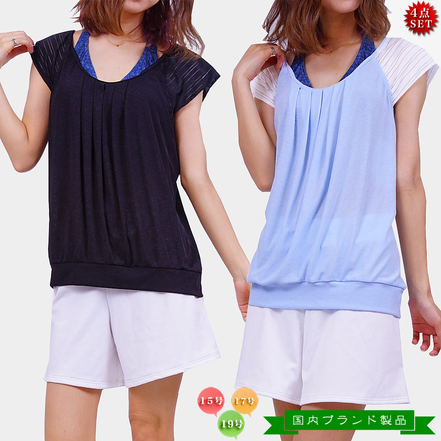 体型カバー タンキニ レディース パンツ付き 4点 セット セット水着 フィットネス水着 大きいサイズ 体型カバー ワンピース水着 4点セット国内ブランド デニムパンツ 送料無料