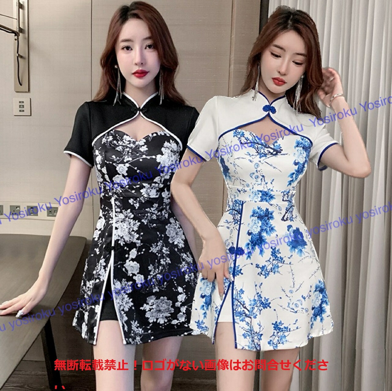 キャバドレス セクシー胸元空き チャイナ風ミニ丈ドレス レディースファッション ドレス
