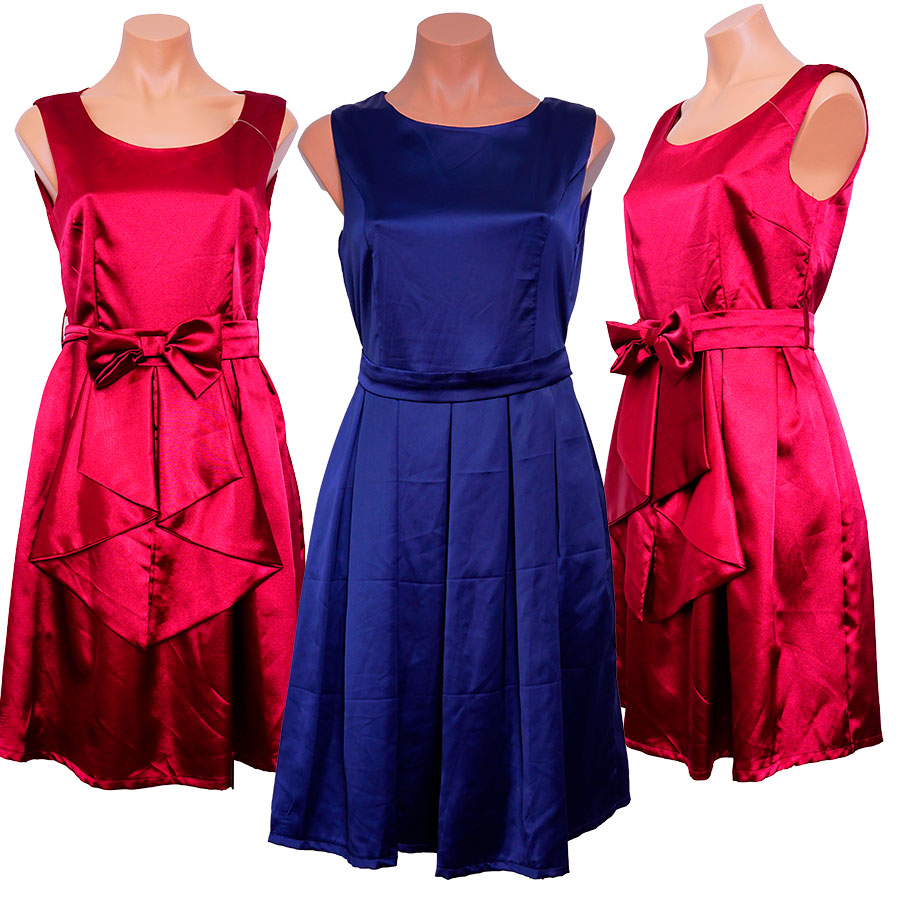 リボン付き 光沢サテンバデザイン パーティードレスミドルミディアム丈Aラインワンピースフォーマル 11号にも ¥3980以上 ML二次会披露宴結婚式社交ダンスウェア発表会9号