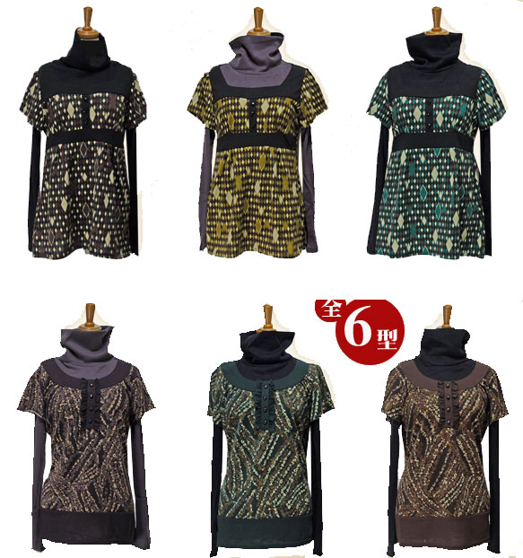 重ね着風 トップス タートルネック 立ち襟 秋冬 カットソー ミセス 長袖 レイヤード風 シャツ レディース