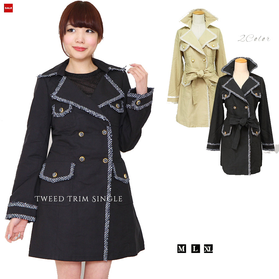 トレンチコート レディース 大きいサイズ 春 ショート アウター コート 秋 スプリングコート 春コート 30代 40代 50代 ミセス クリュドリィ ツイードトリミング 大人 l 2l 3 上品