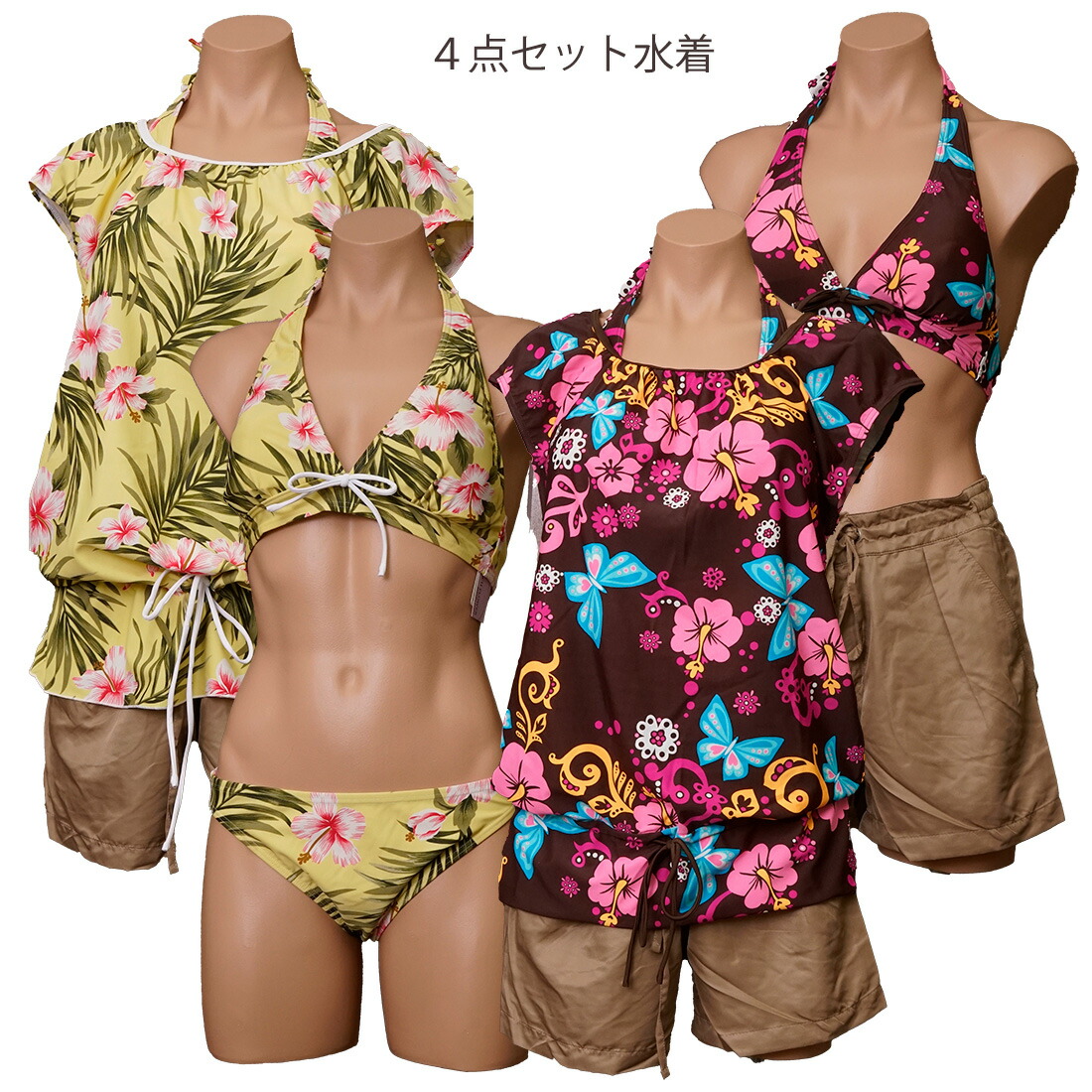 水着 レディース 体型カバー タンキニ セパレート ショートパンツ サーフパンツ 女性用 ビキニ セット 4点 大きいサイズ ママ ミセス 30代 40代 女の子