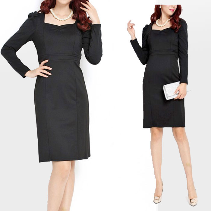 膝丈 レディース ワンピース 長袖 春 秋 冬 部屋着 オフィス おしゃれ かわいい 可愛い 体型カバー 大きいサイズ タイト ライン ミディアム レトロ マタニティ 送料無料/