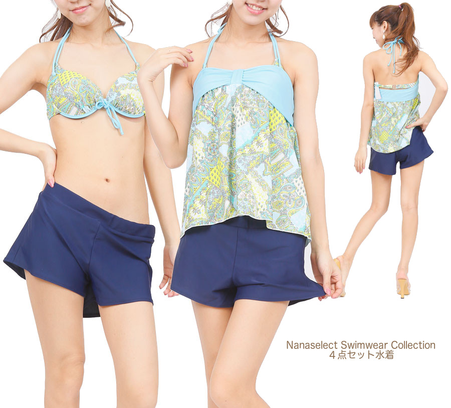 ナイスクラップ 水着 体型カバー タンキニ レディース ビキニ セパレート 4点セット 体型カバー水着 30代 40代 50代 60代 ママ ミセス 水着体型カバー セット パンツ 半袖 ラ ママ水着