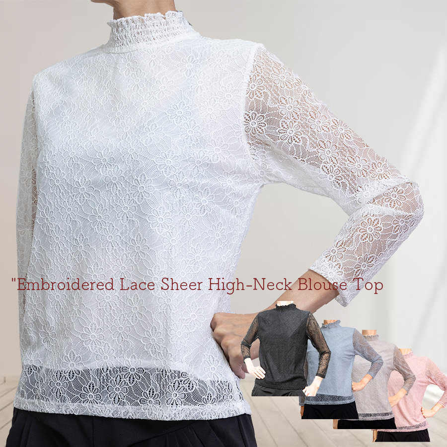 シアートップス シースルー レース トップス 長袖 シースルートップス シアーシャツ シースルーブラウス シアー インナー ハイネック ブラウス ミセス 演奏会 クラシカル スタンドカラー フォーマル