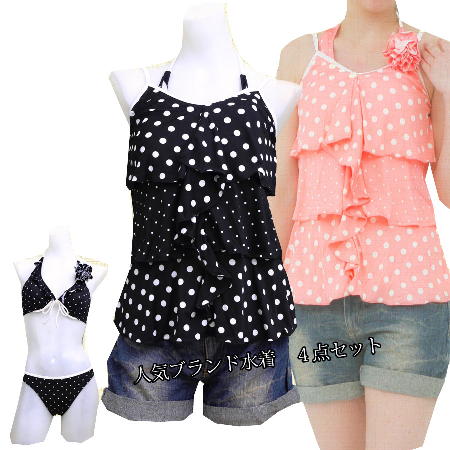 レディース 水着 体型カバー タンキニ 大きいサイズ サーフパンツ パンツ 4点 セット ワイヤー入り カバーカップ水着 国内ブランド お洋服のような 水着の上に着る 送料無料