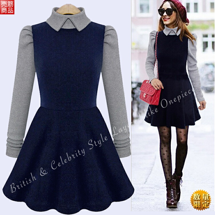ミニワンピース 重ね着風 ワンピース きれいめ 大人 上品 長袖 秋冬 春 襟付き 大人可愛い 大きいサイズ aライン レトロ クラシカル カジュアル セクシー タイト 黒 ネイビー ll ナチュラル