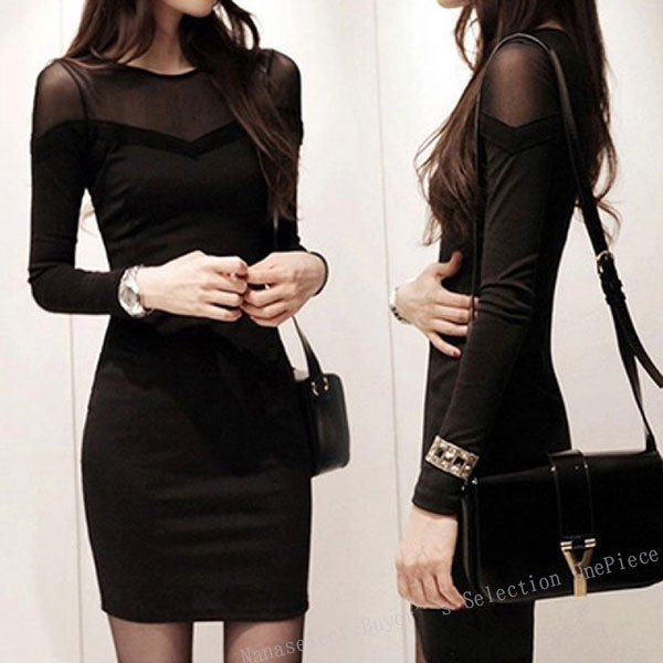 ミニ ワンピース ミニワンピース セクシーワンピース タイト キャバドレス キャバワンピ ボディコン 長袖 秋冬 春 タイトミニワンピース 袖 シースルー 黒 セクシー